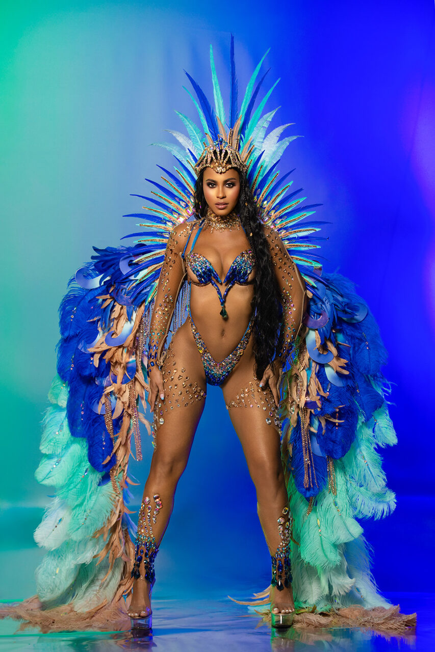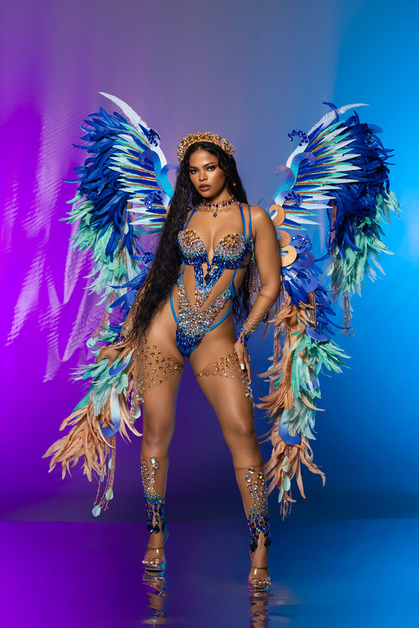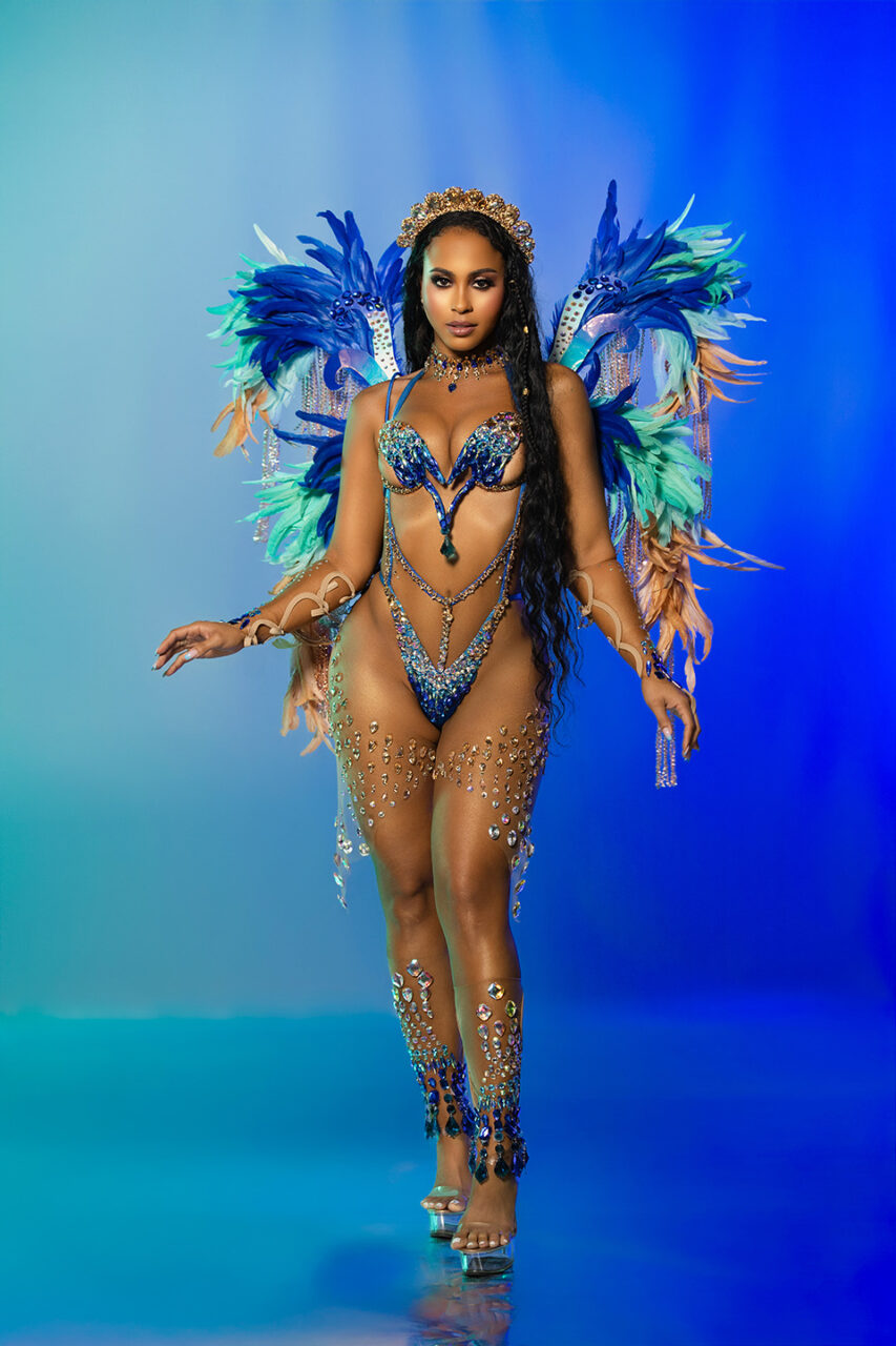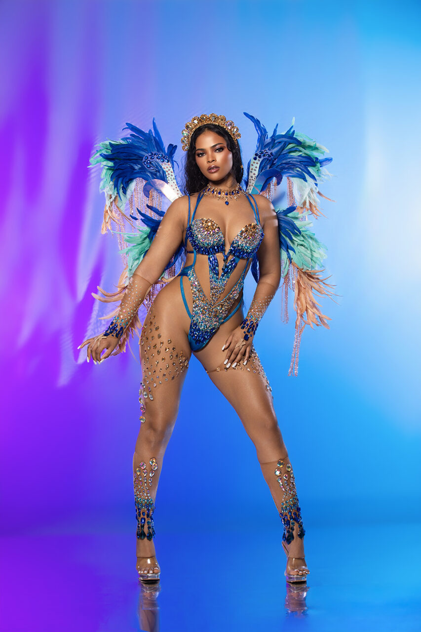 Mystara – Wire Bra and Decorated Bikini with Jewelled Crown, Lower Legs, Neck & Sleeve with Individual Backpack